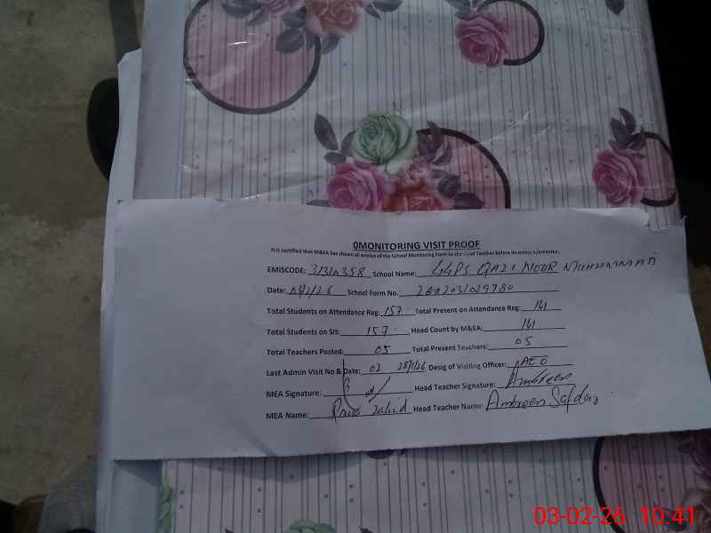 | EMIS Code: 31310358 | Name of School: GGPS QAZI NOOR MOHAMMAD | |||