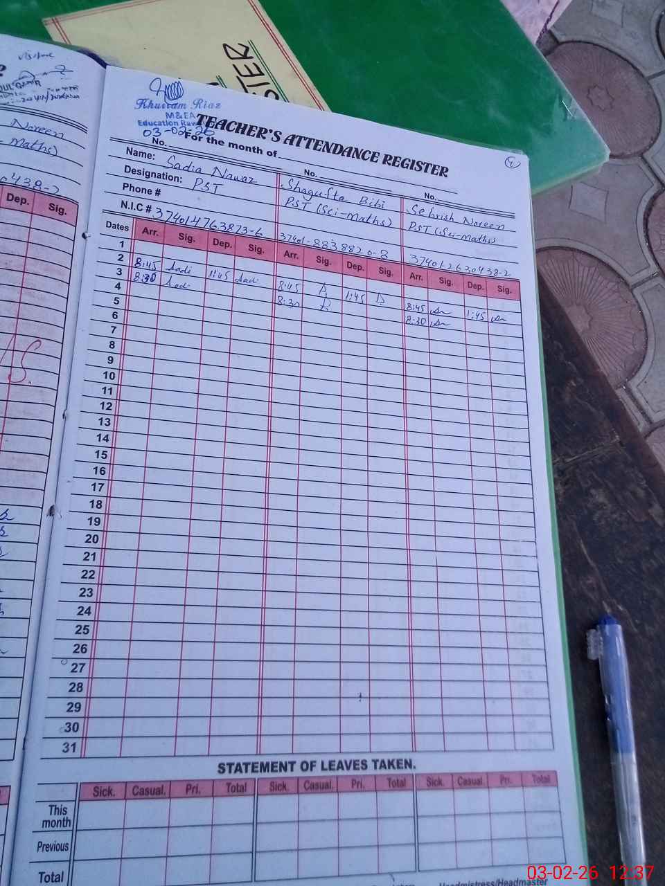| Name: Af**** Qa**** Designation: (School Headmaster's/Headmistress's) PST Phone/Cell Number: 03**** |