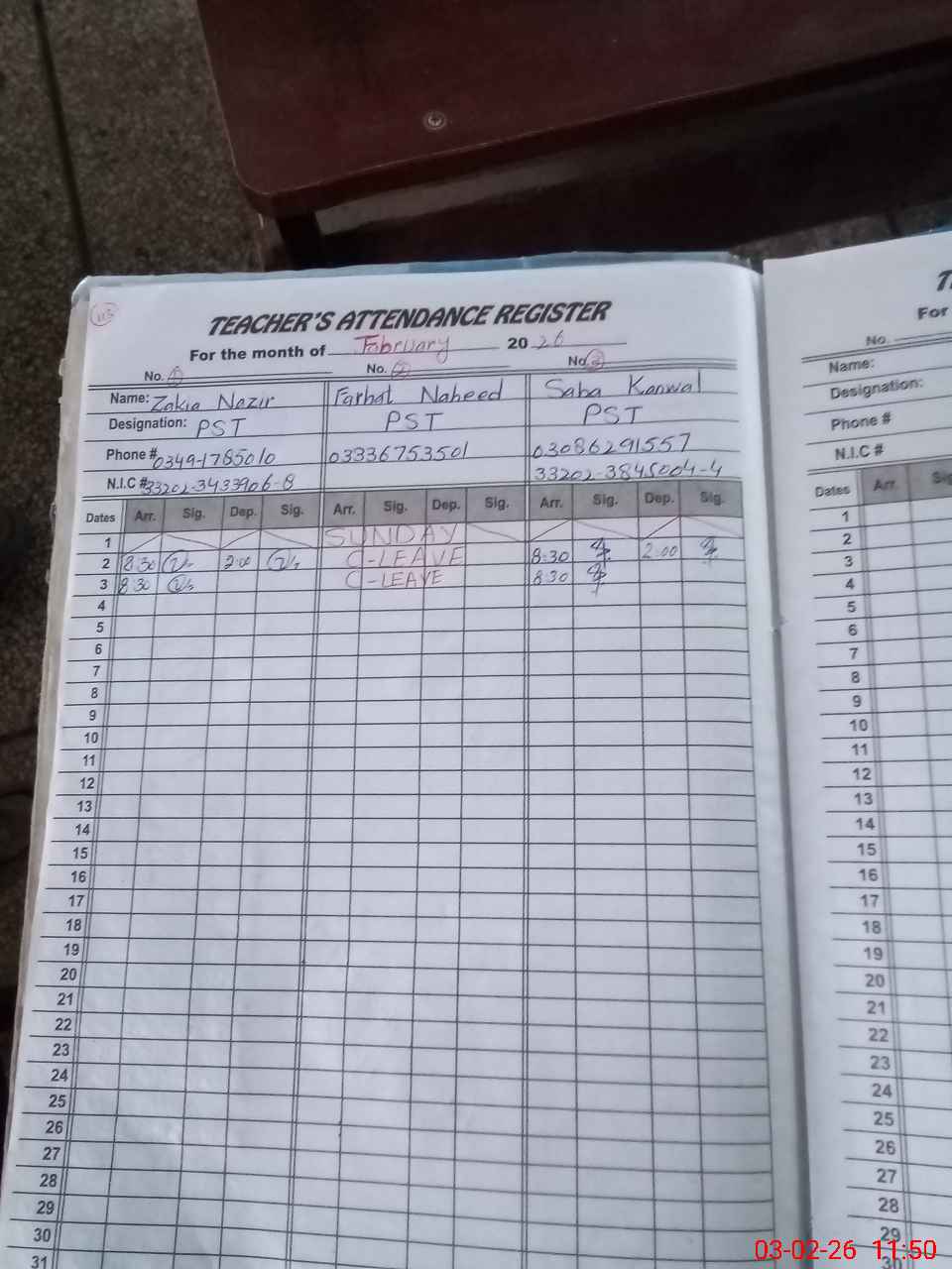 | Name: ZA**** NA**** Designation: (School Headmaster's/Headmistress's) PST Phone/Cell Number: 03**** |