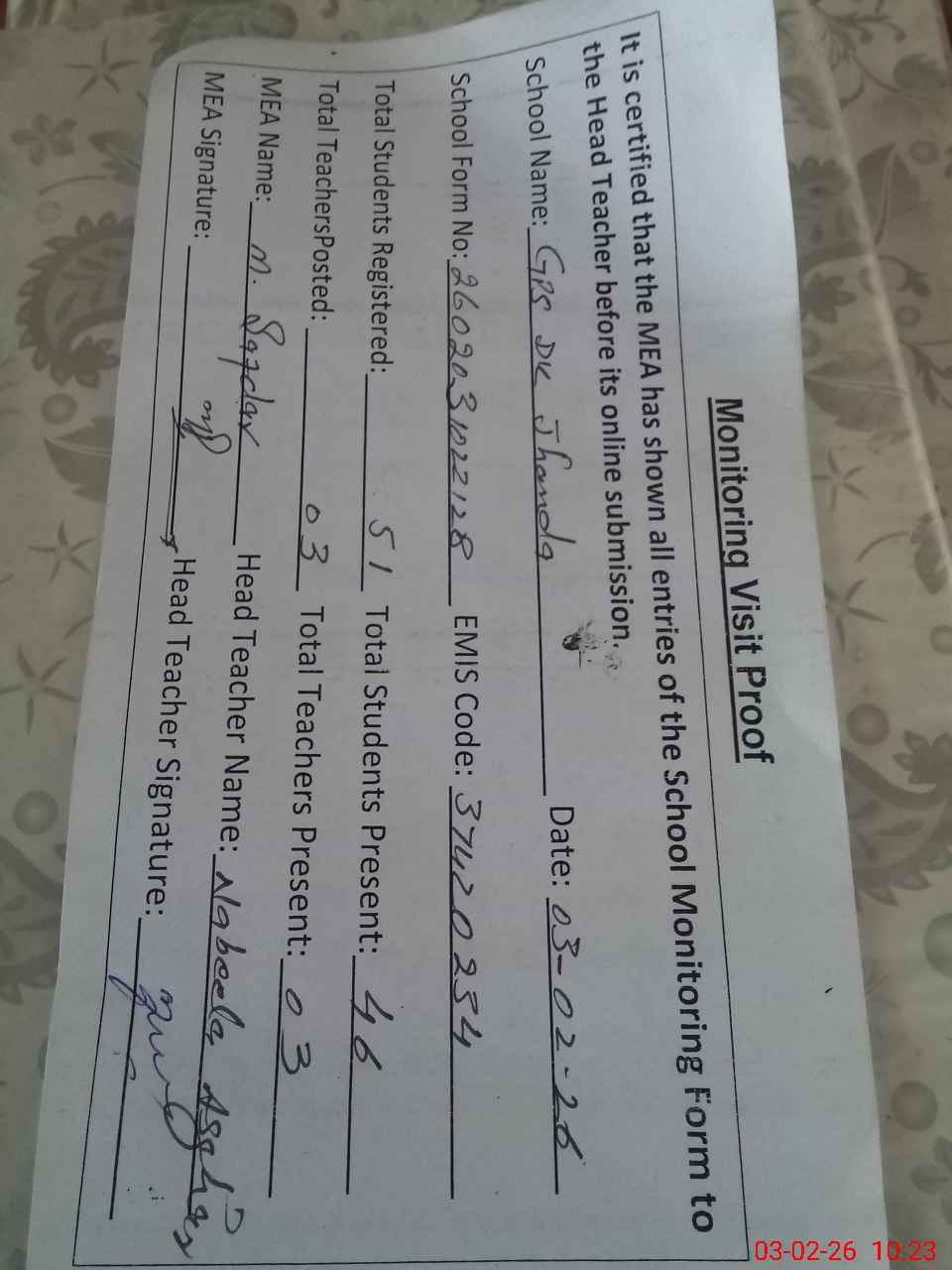 | EMIS Code: 37420234 | Name of School: GPS JHANDA | |||