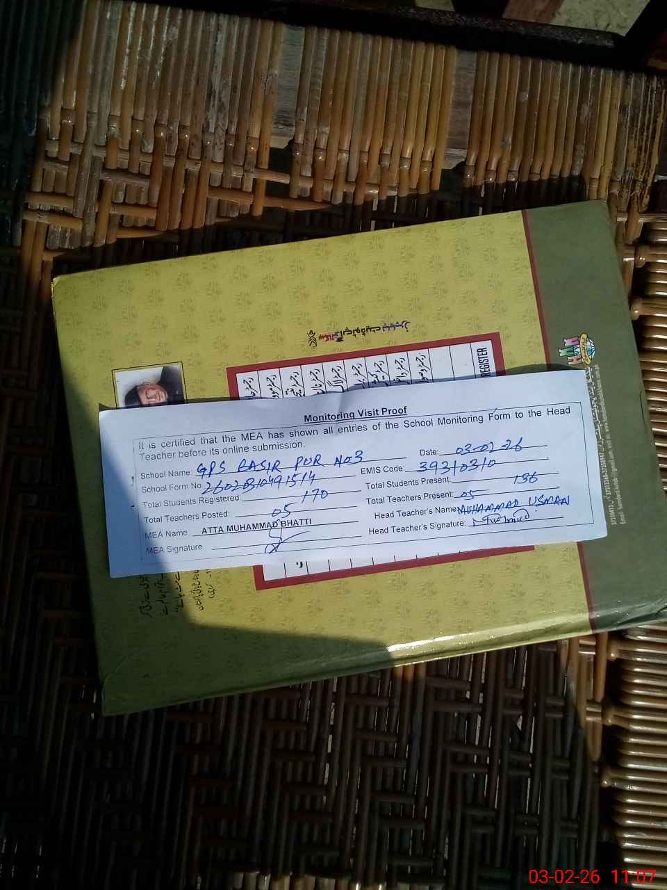 | EMIS Code: 39310310 | Name of School: GPS BASIR PUR NO. 3 | |||