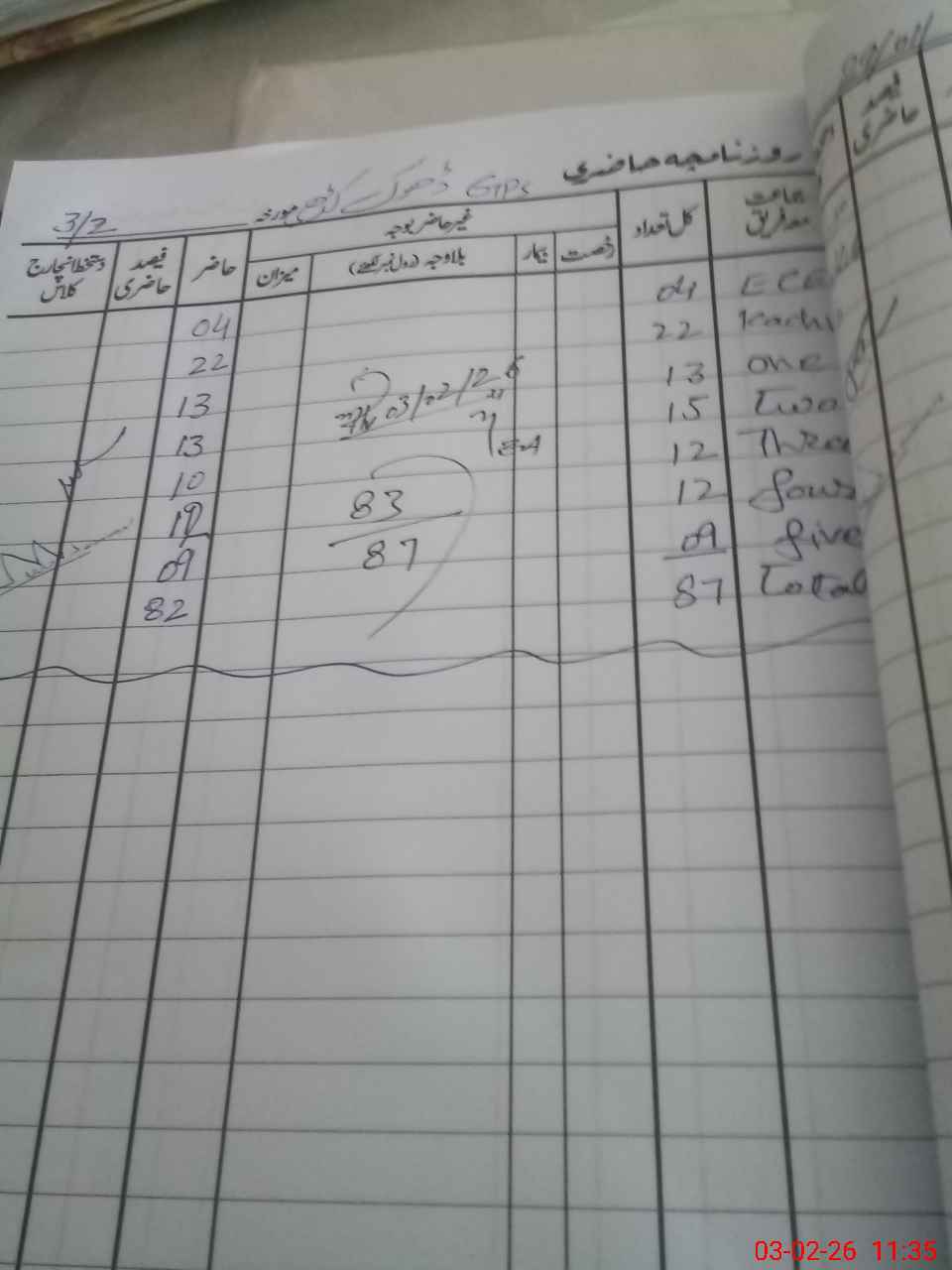 | Total Students Present | 0 | 4 | 13 | 13 | 10 | 12 | 9 | 83 | ||||||||
