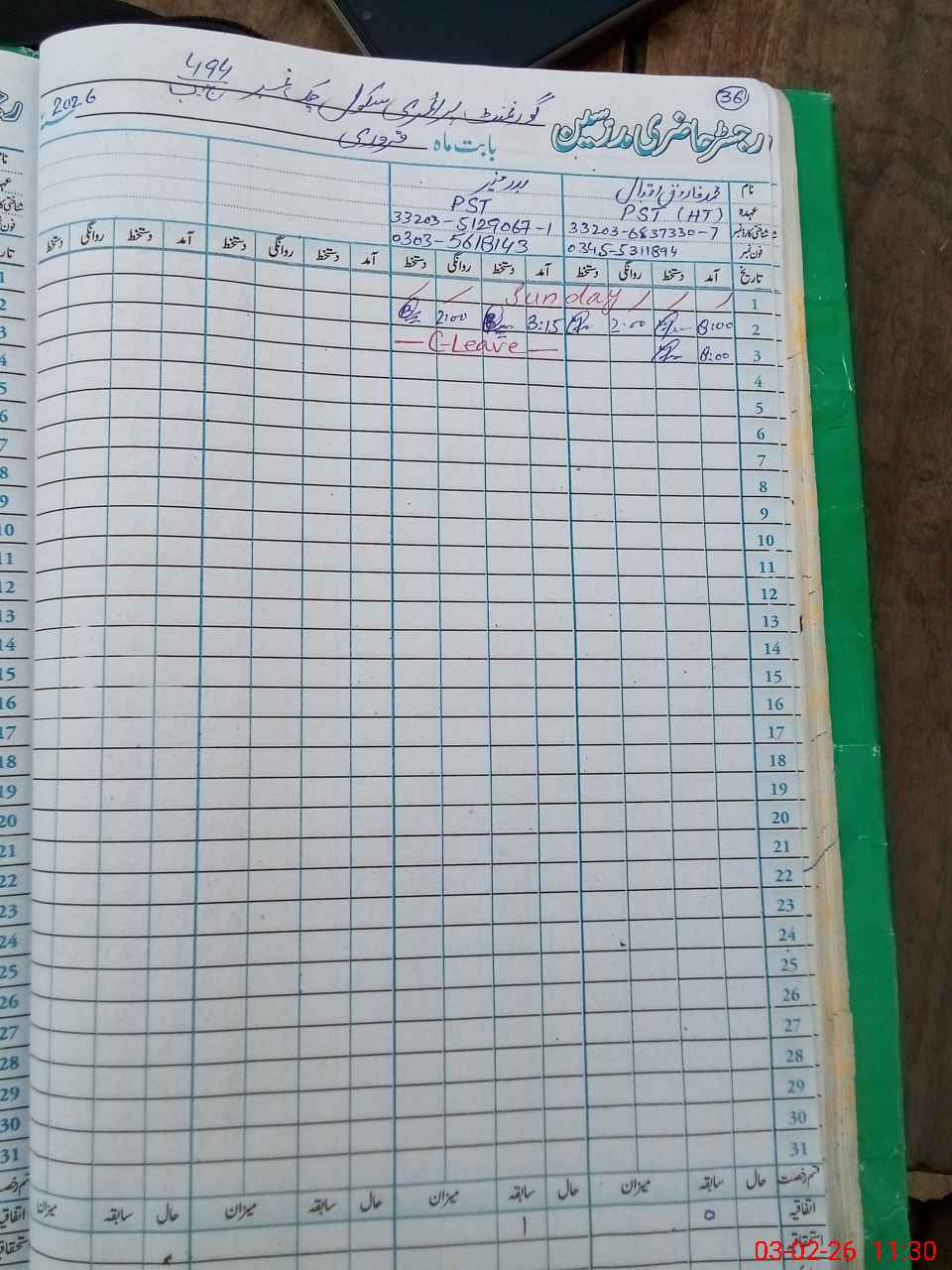 | Name: MU**** FA**** IQ**** Designation: (School Headmaster's/Headmistress's) PST Phone/Cell Number: 03**** |