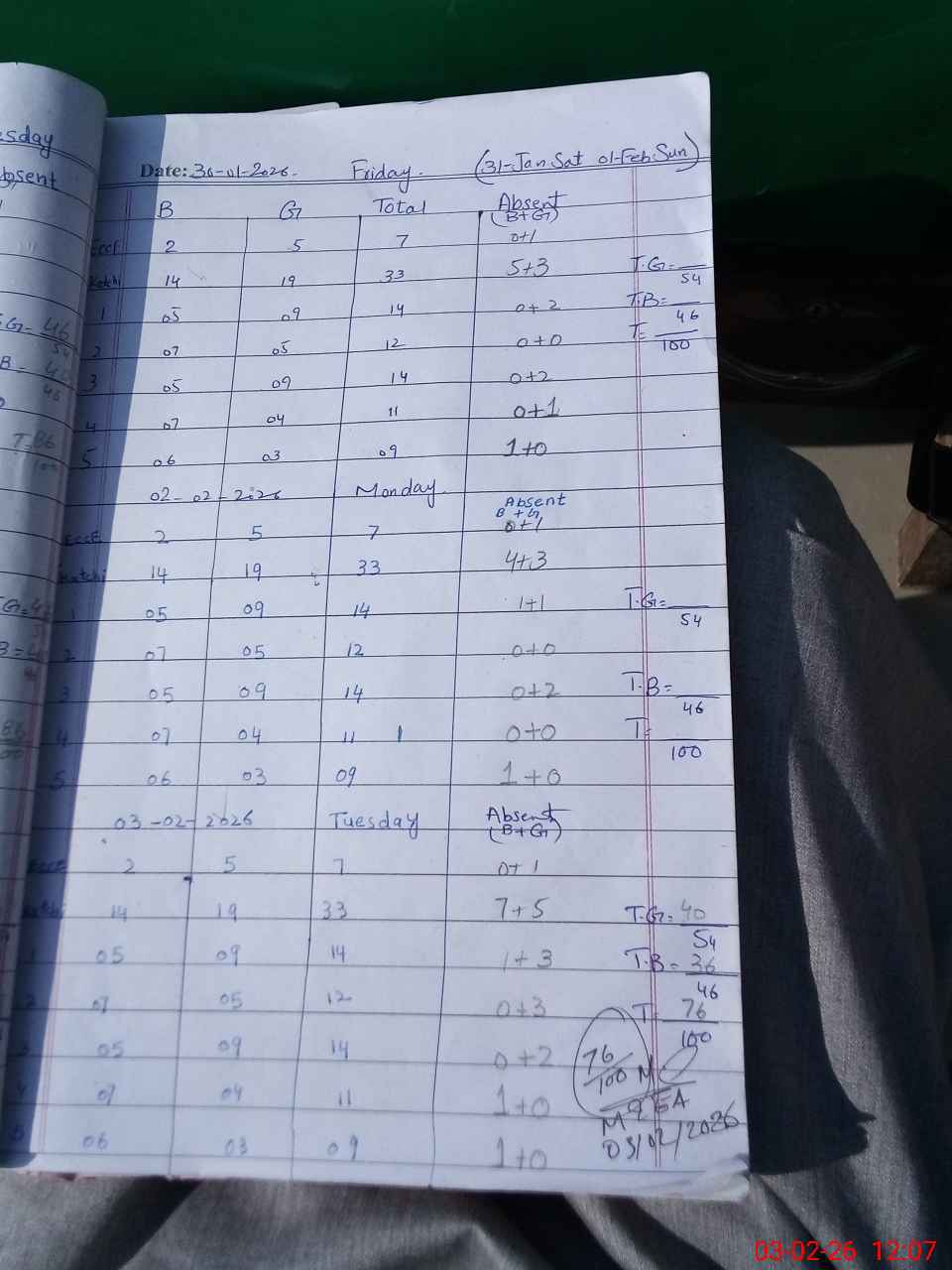 | Monitoring Date: 03-02-2026 | Start Time: 03-02-2026 11:48 AM | End Time: 03-02-2026 12:09 PM | Name of MEA: Mu**** Sa**** | |