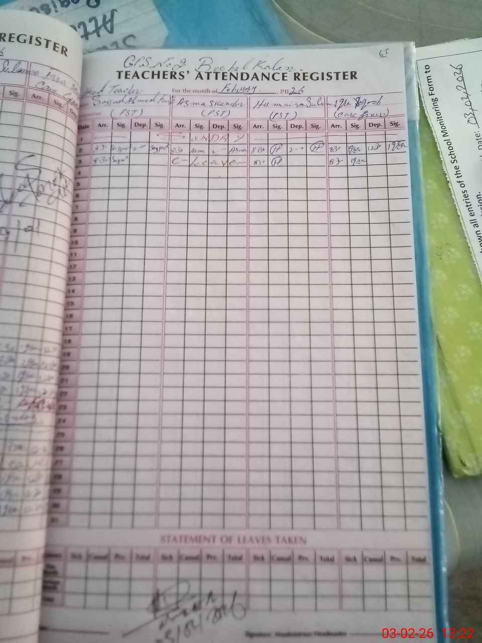 | Monitoring Date: 03-02-2026 | Start Time: 03-02-2026 12:41 PM | End Time: 03-02-2026 01:23 PM | Name of MEA: Mu**** Sa**** | |