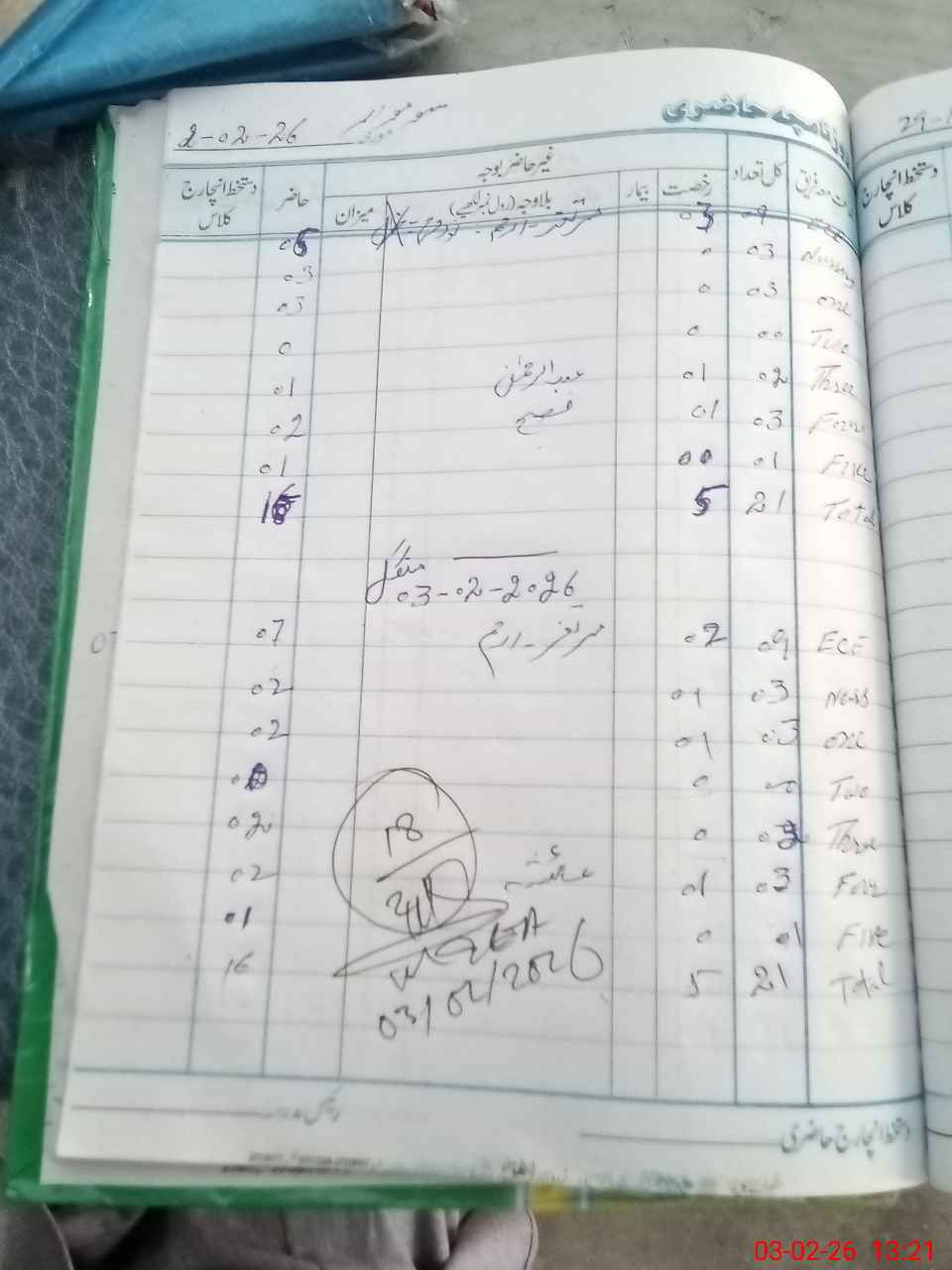 | CNIC | Full Name | Designation | R/C | Absence During Last Calender Month |