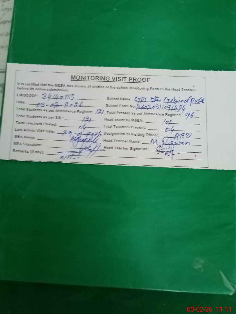 | EMIS Code: 34140133 | Name of School: GPS GOBIND PURA | |||