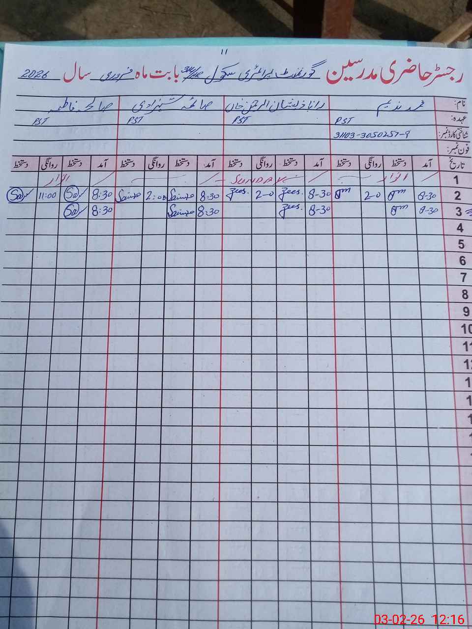 | Name: MU**** Na**** Designation: (School Headmaster's/Headmistress's) PST/PTC/JV Phone/Cell Number: 03**** |