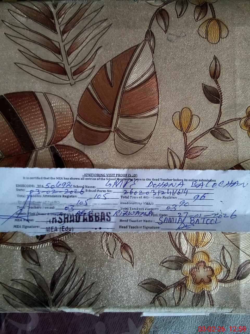 | EMIS Code: 38450492 | Name of School: GMPS DOHANA BALOCHAN | |||