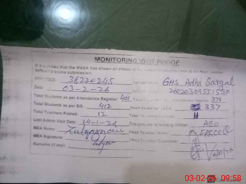| EMIS Code: 38220245 | Name of School: GHS ADHI SARGAL | |||