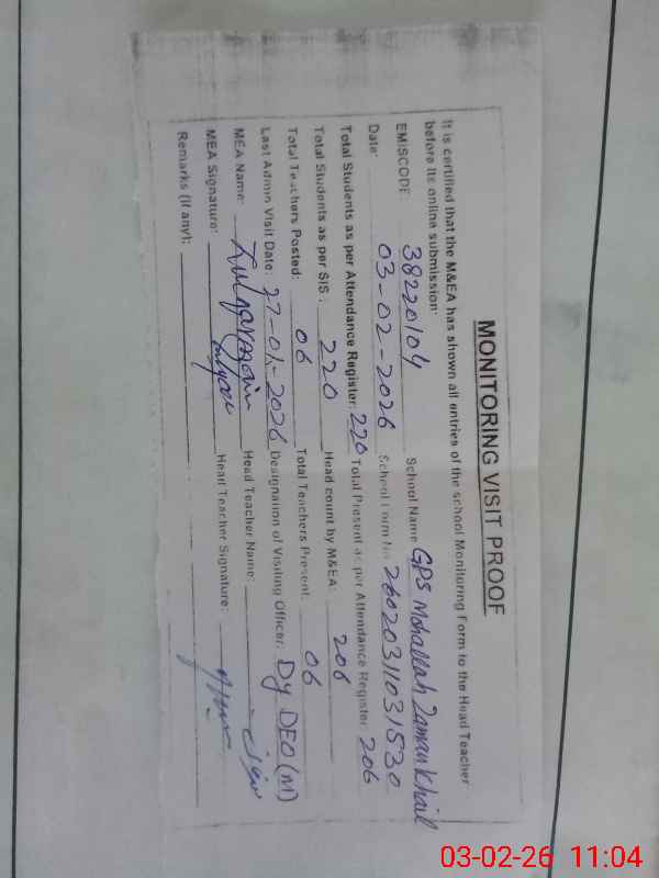 | EMIS Code: 38220104 | Name of School: GPS MOHALLAH ZAMAN KHAIL | |||