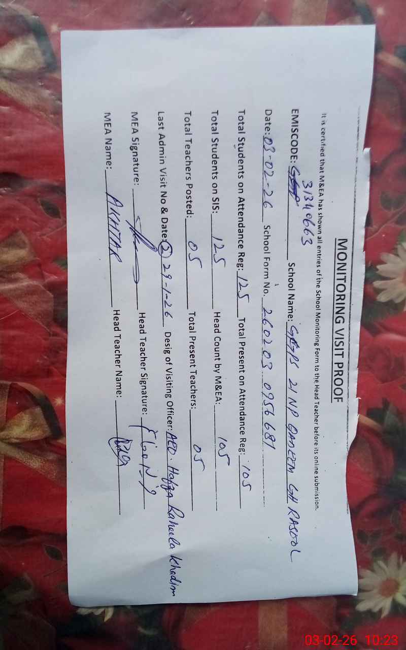 | EMIS Code: 31340663 | Name of School: GGPS 21/NP QADEEM GHULAM RASOOL | |||