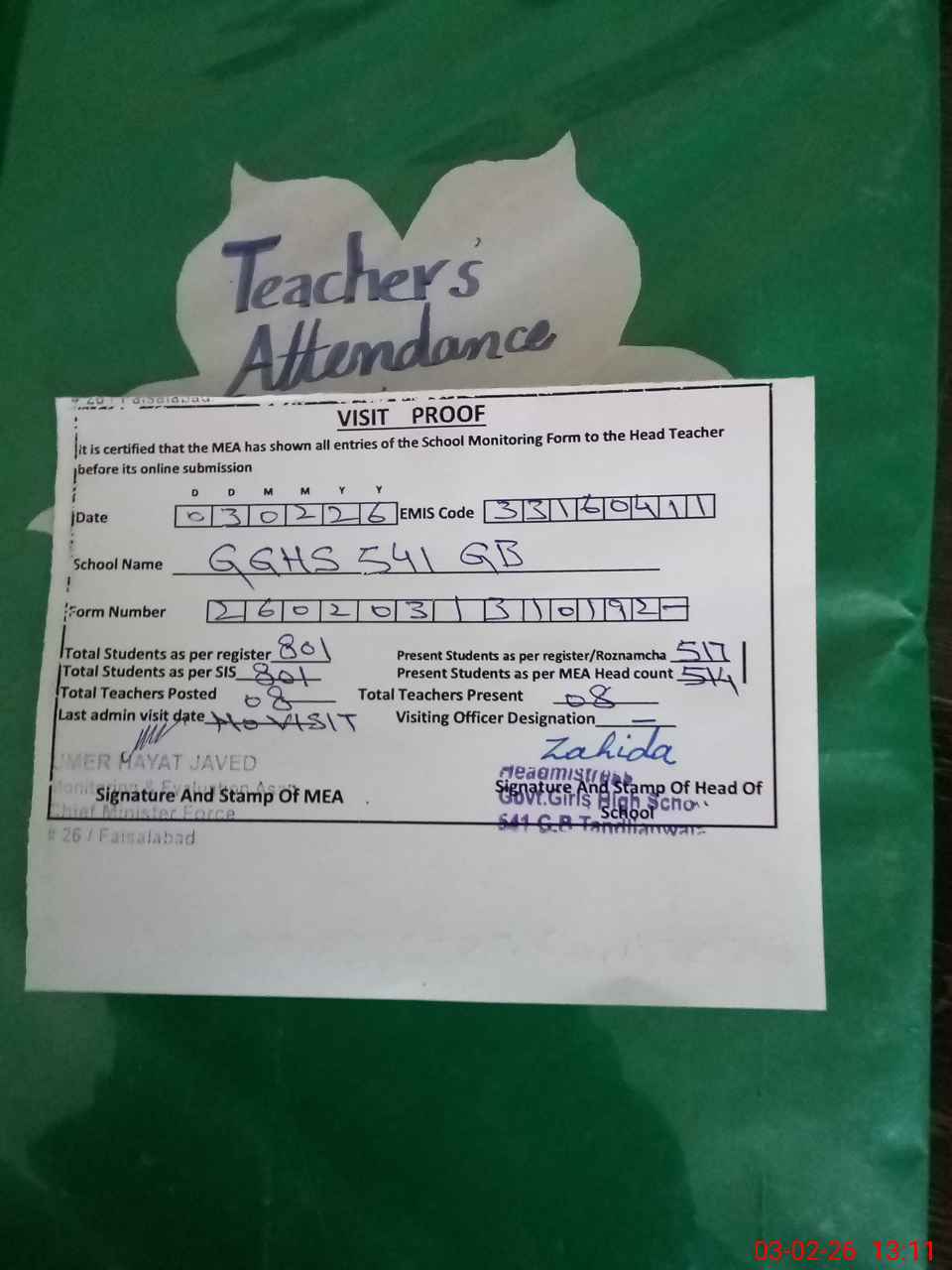 | EMIS Code: 33160411 | Name of School: GGHS 541 GB | |||