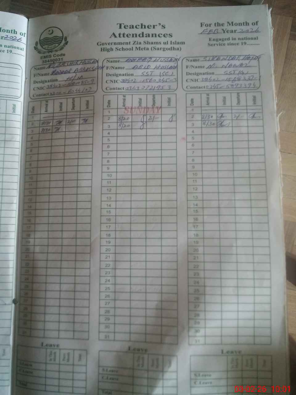 | Name: SY**** MU**** HA**** Designation: (School Headmaster's/Headmistress's) SST ( SCIENCE) Phone/Cell Number: 03**** |
