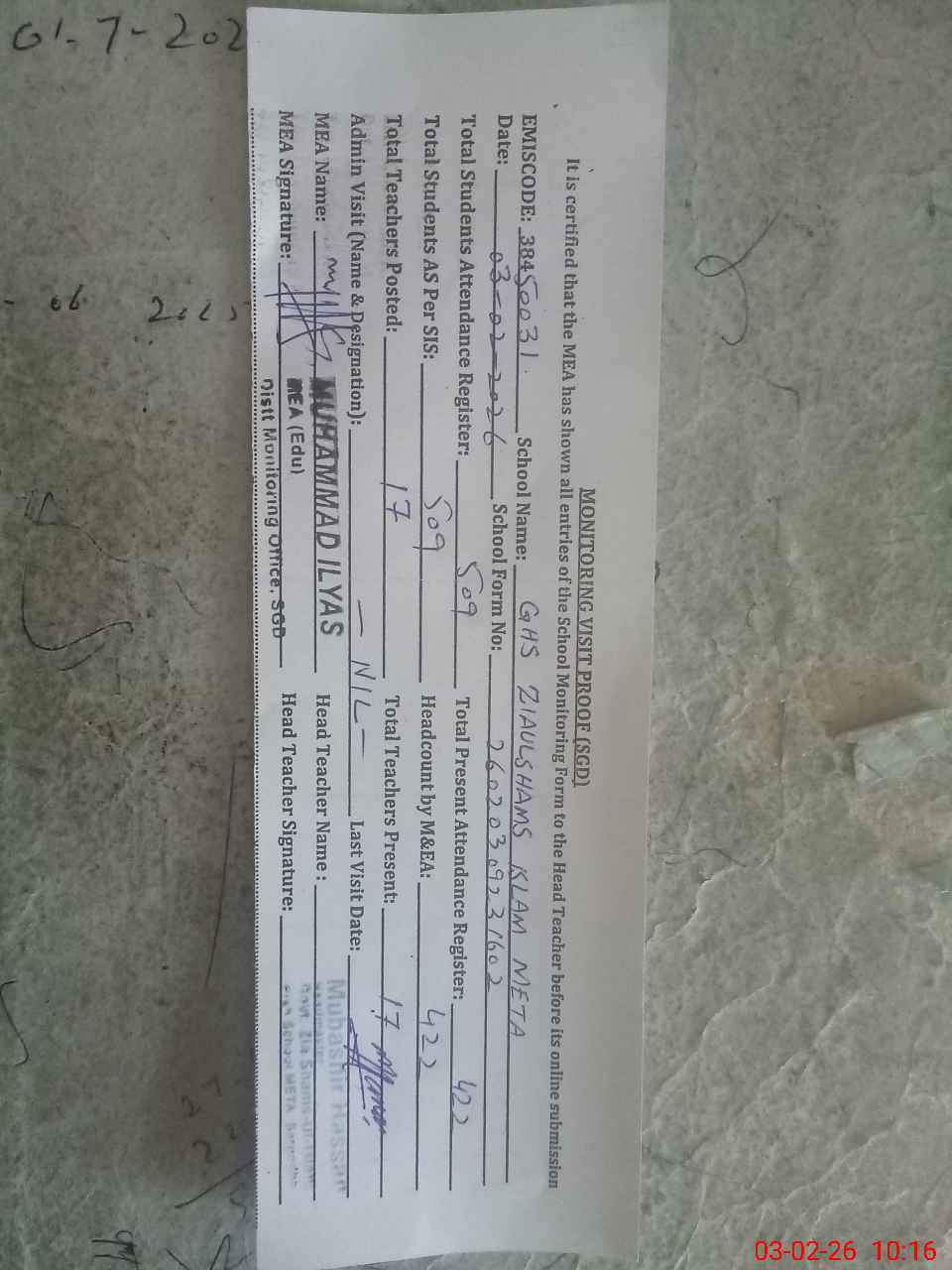 | EMIS Code: 38450031 | Name of School: GHS ZIA-UL-SHAMS ISLAM (MEETA) | |||