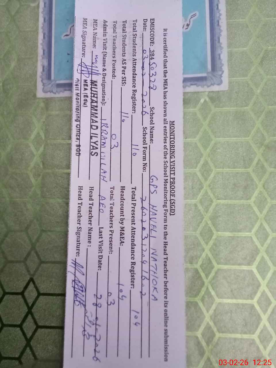 | EMIS Code: 38450328 | Name of School: GPS HAVELI NATHOKA | |||