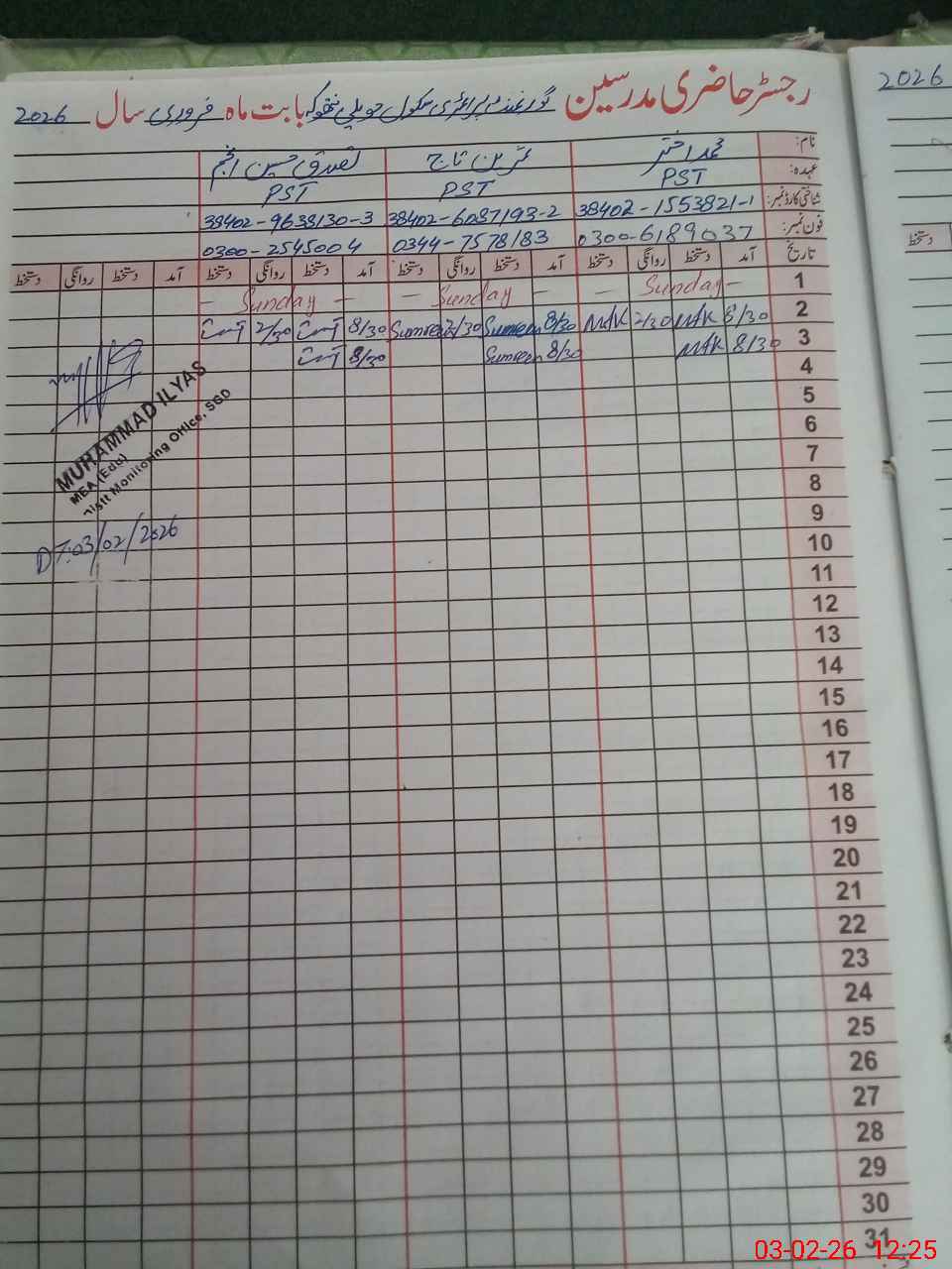 | Name: MU**** AK**** Designation: (School Headmaster's/Headmistress's) PST Phone/Cell Number: 03**** |