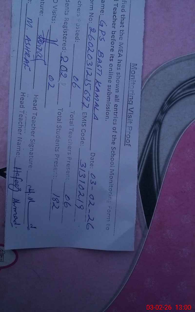 | EMIS Code: 31310219 | Name of School: GPS BASTI KAMALA | |||