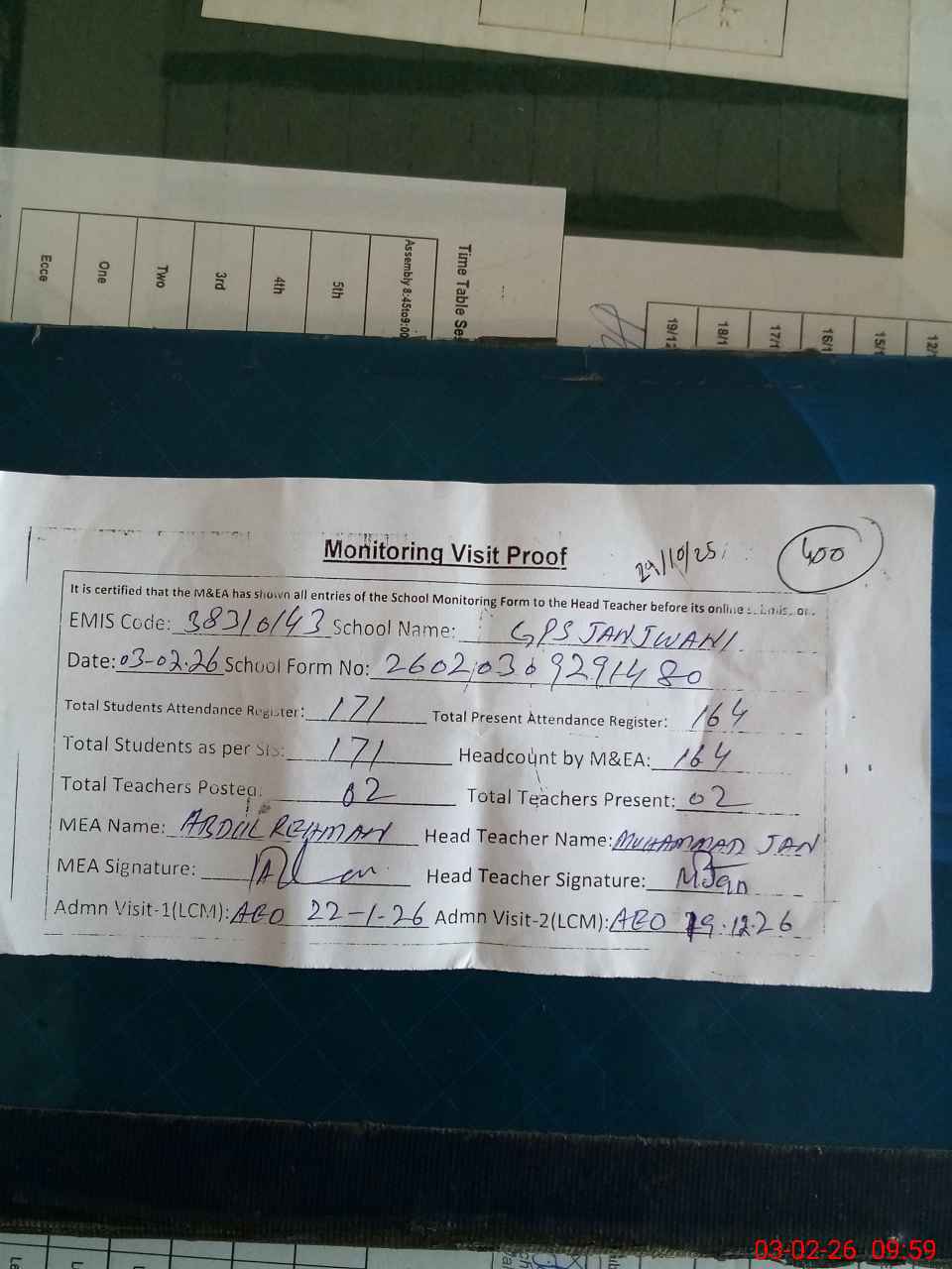 | EMIS Code: 38310143 | Name of School: GPS JANJWANI | |||
