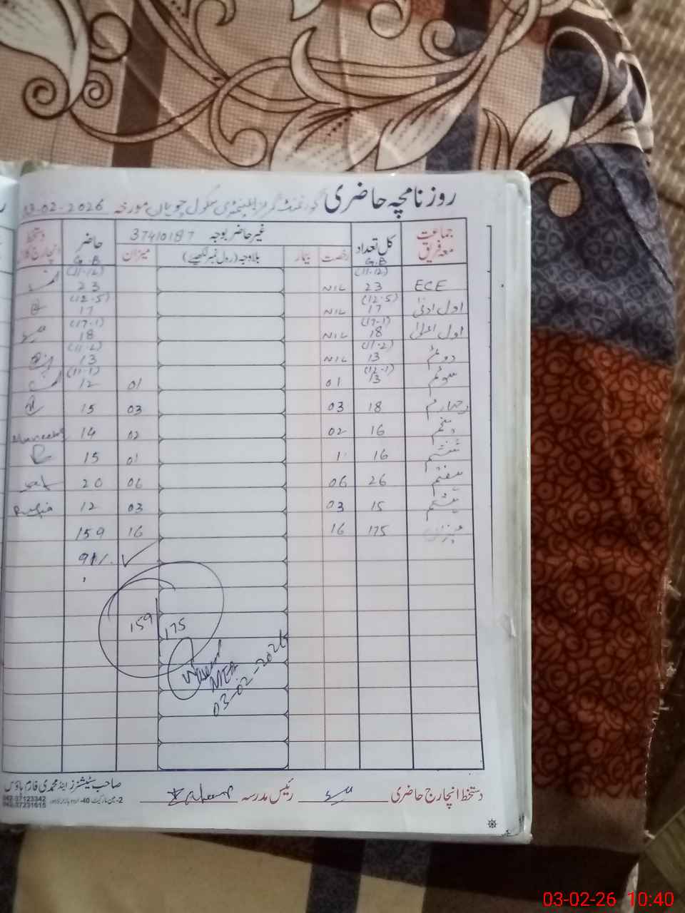 | Remarks (Use Separate Page if Required): Due to less classrooms specially primary classes two classes sitting in one room | |||||