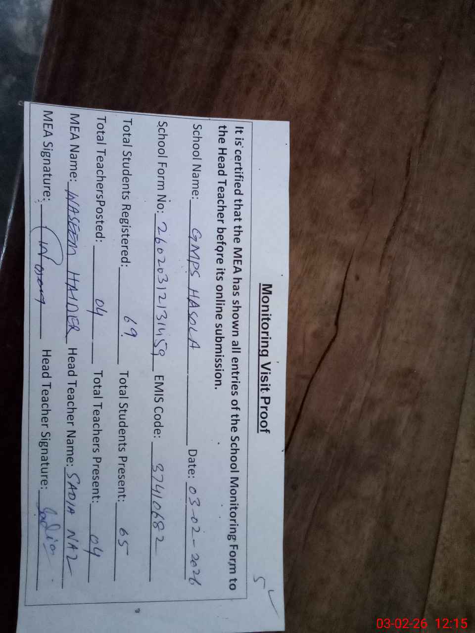 | EMIS Code: 37410682 | Name of School: GMPS HASOLAH | |||