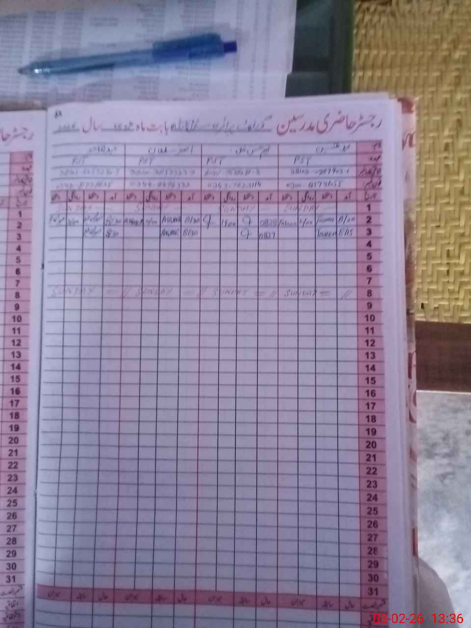 | CNIC | Full Name | Designation | R/C | Absence During Last Calender Month |