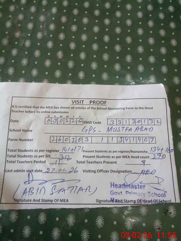| EMIS Code: 33120132 | Name of School: GPS MUSTAFA ABAD JRN FSD | |||
