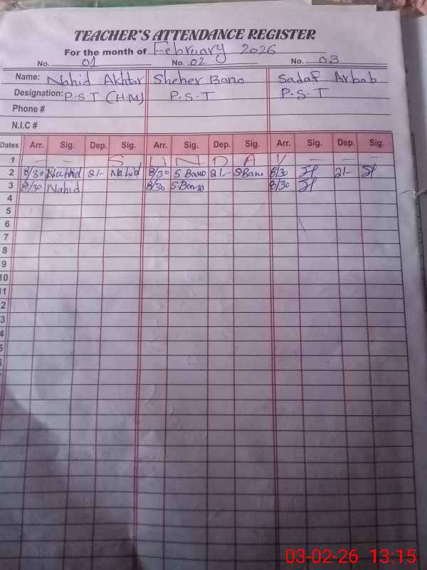 | Name: NA**** AK**** Designation: (School Headmaster's/Headmistress's) PST Phone/Cell Number: 03**** |