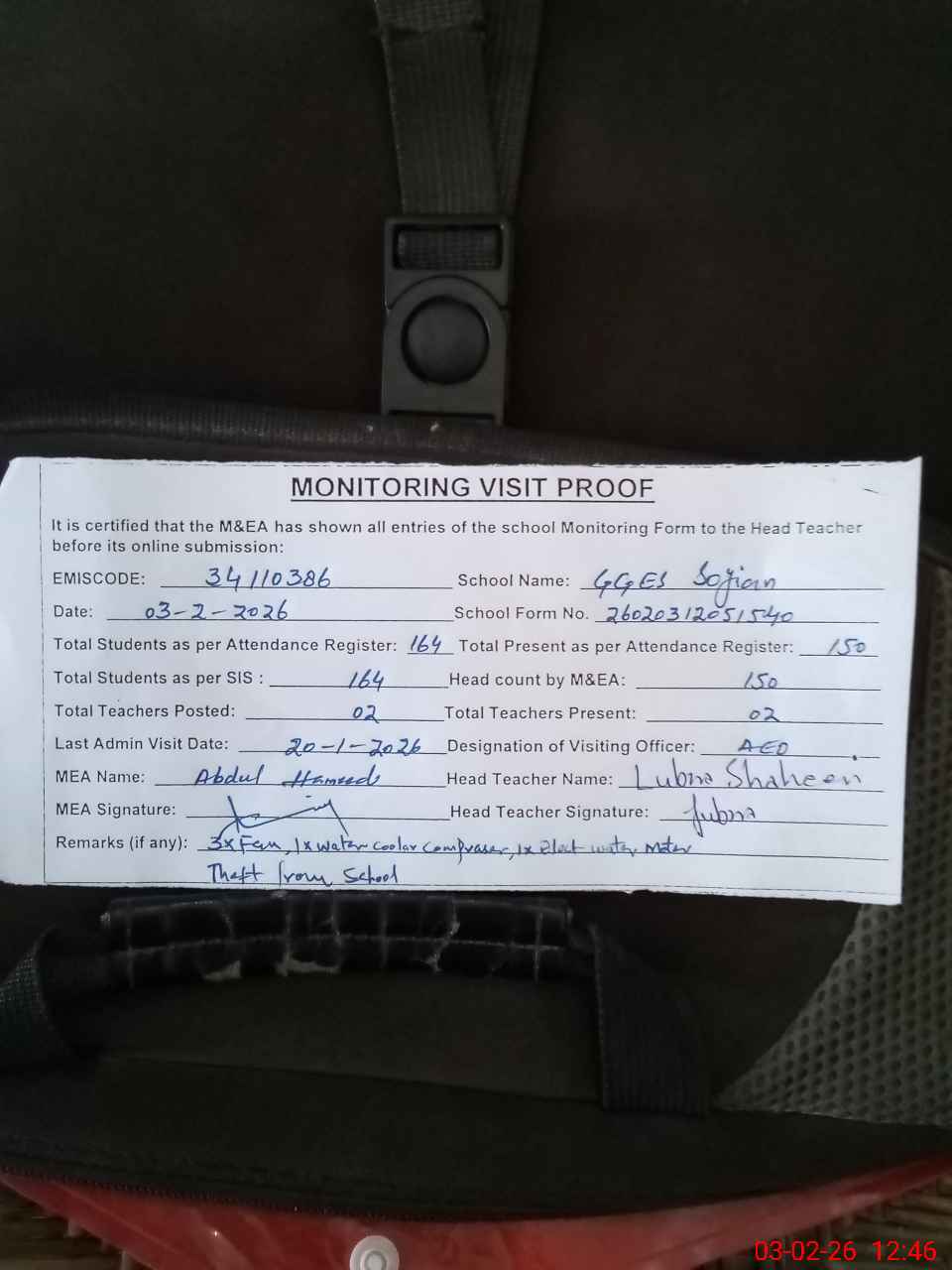 | Certified that this School was Inspected by the Undersigned MEA/DMO Today and the Information Stated Above is as Per Record. | |||||