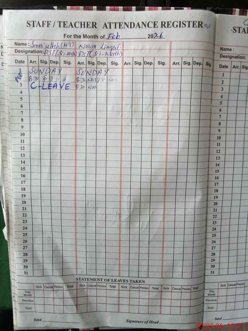 | 34**** | Sa**** | ESE (Arts) | Contract | 0 | 0 | 0 | 0 | 0 | 0 | 0 | 0 | 0 | Casual |