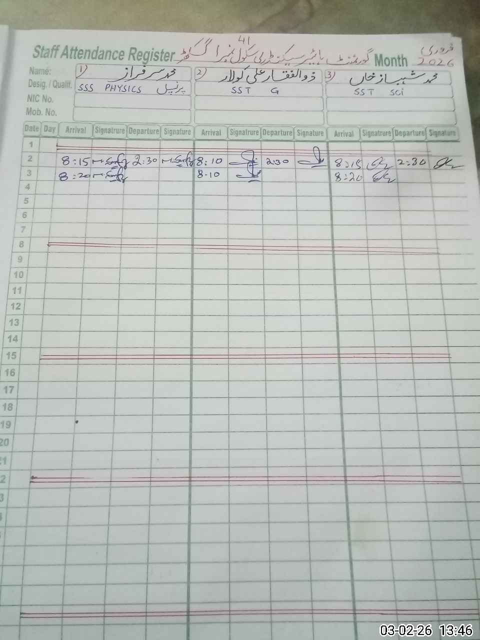 | EMIS Code: 34120014 | Name of School: GHSS NO.1 GHAKHAR | |||