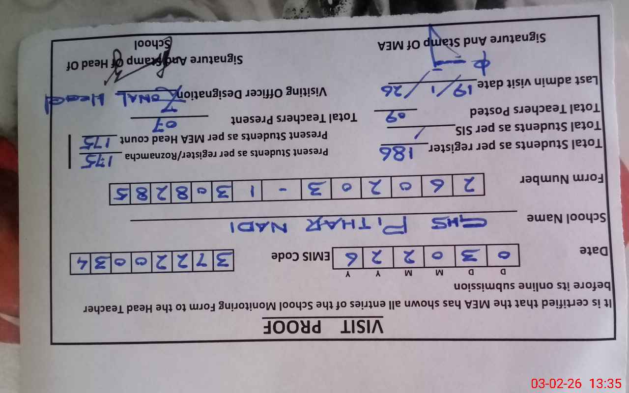 | EMIS Code: 37220034 | Name of School: GHS PITHAR NADI | |||