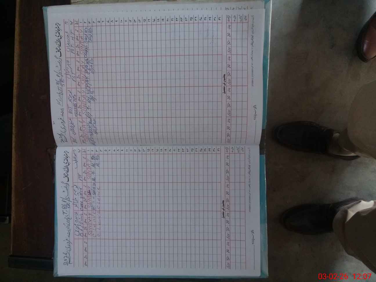 | CNIC | Full Name | Designation | R/C | Absence During Last Calender Month |