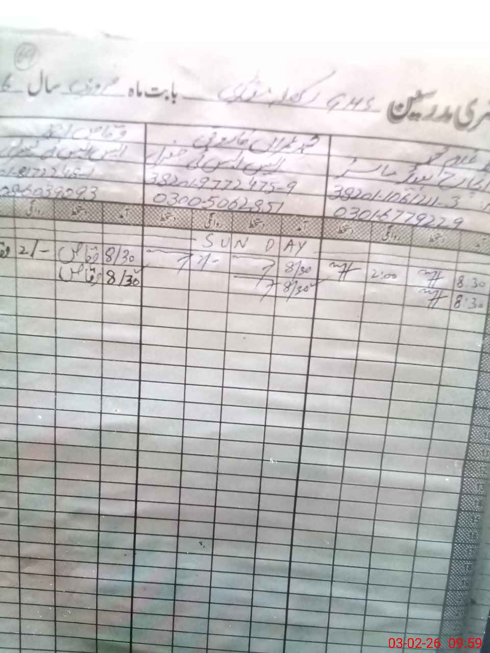 | Name: Ha**** Gh**** Mu**** Designation: (School Headmaster's/Headmistress's) SST Math Phone/Cell Number: 03**** |