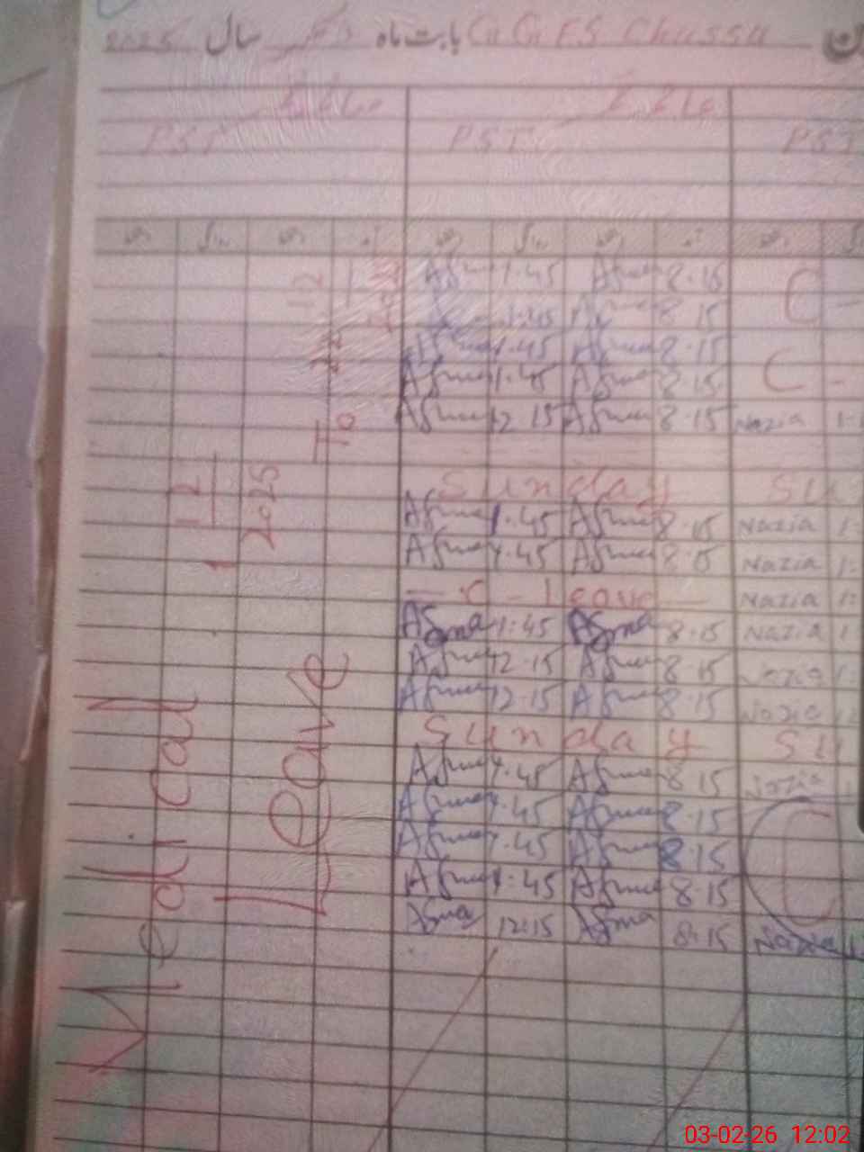 | Leave | Duty | Absent | Maternity | Medical | Ex- Pak |