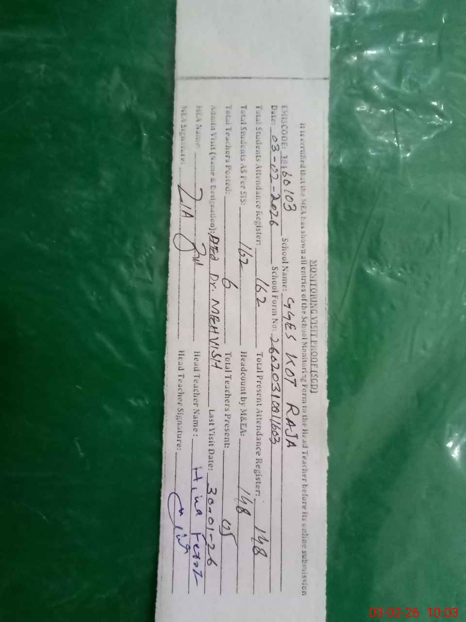 | EMIS Code: 38460103 | Name of School: GGES KOT RAJA | |||