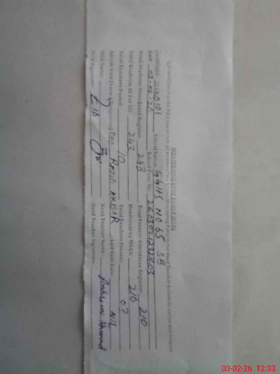 | Certified that this School was Inspected by the Undersigned MEA/DMO Today and the Information Stated Above is as Per Record. | |||||