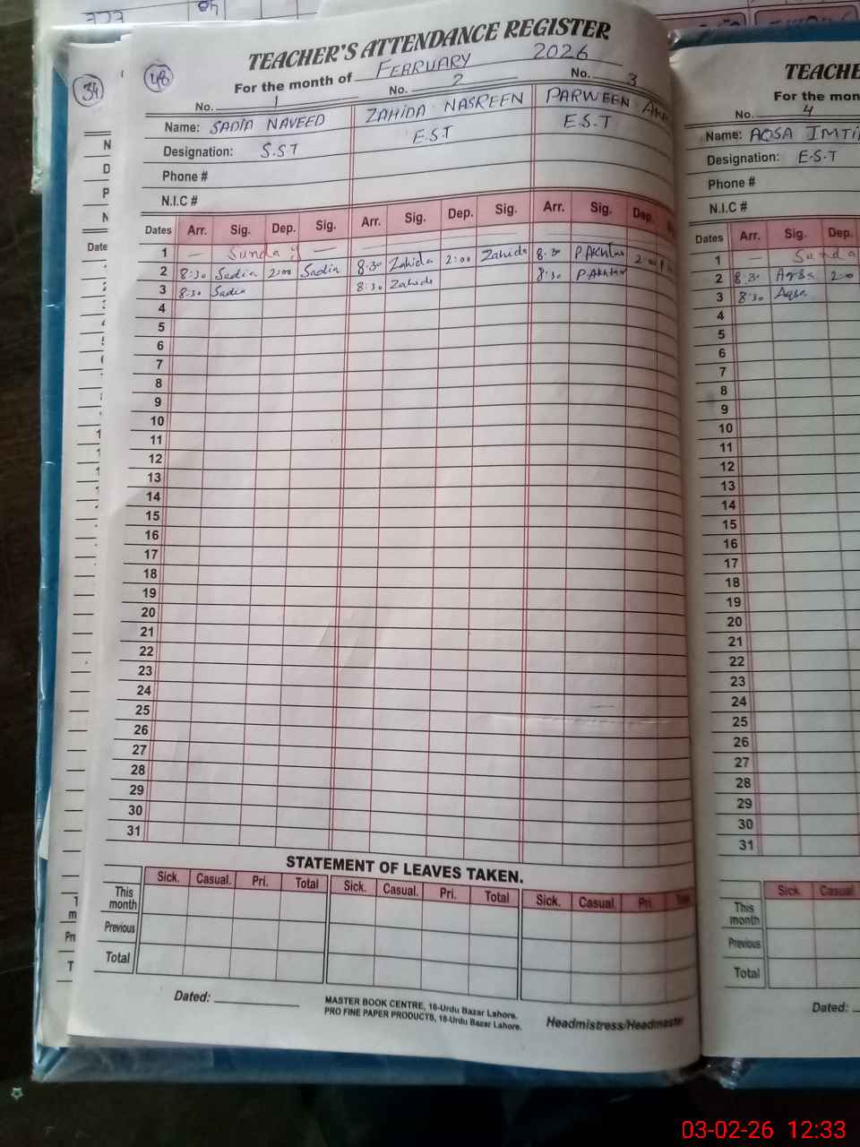 | Name: SA**** NA**** Designation: (School Headmaster's/Headmistress's) SST (GENERAL ) Phone/Cell Number: 03**** |