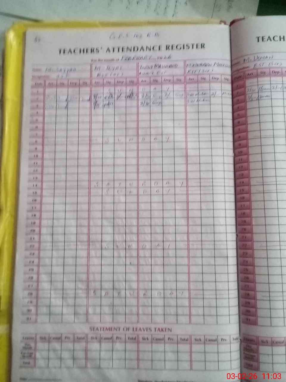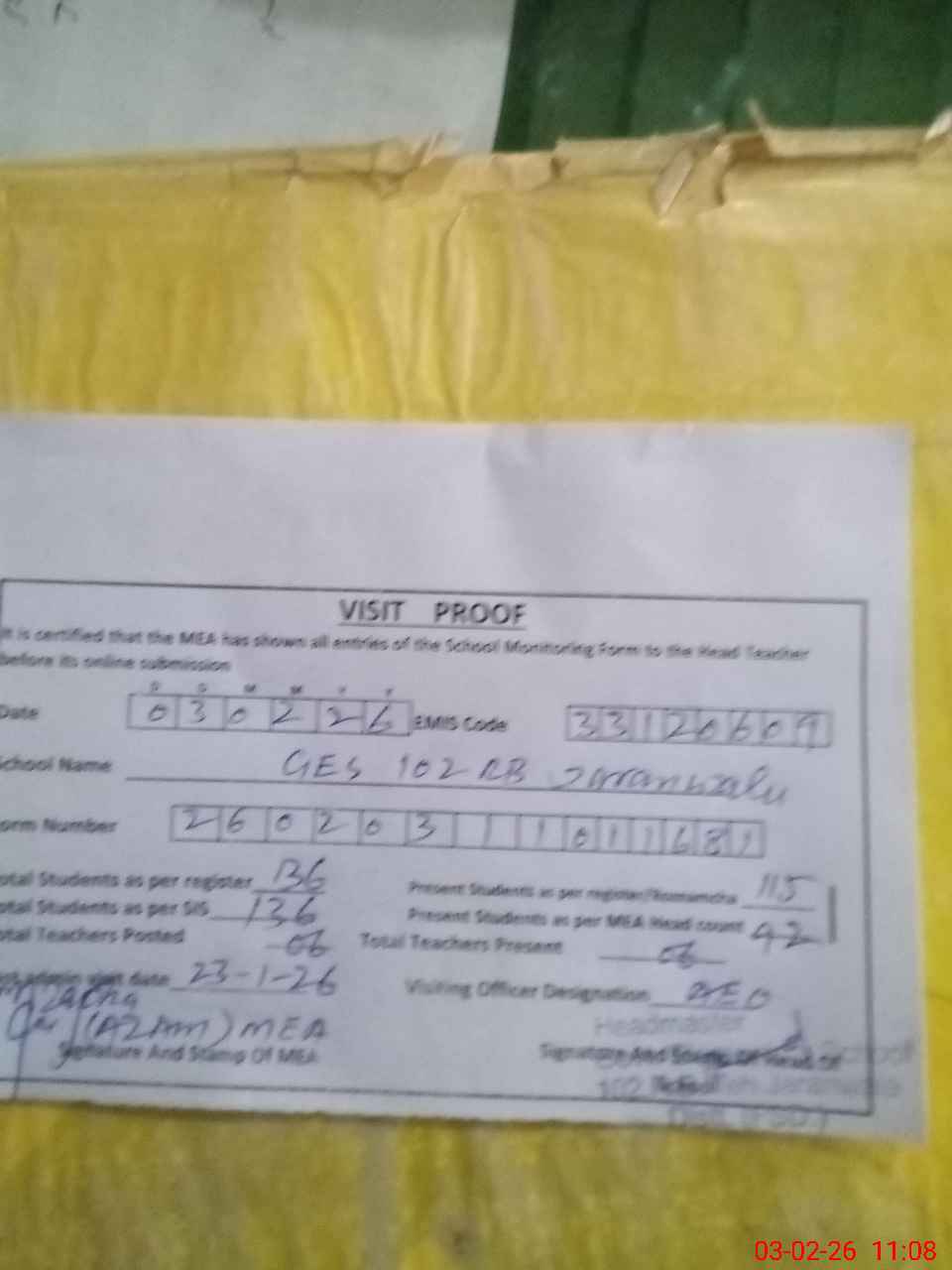 | Attendance Register | Head Teacher | MEA with School | Visit Proof |