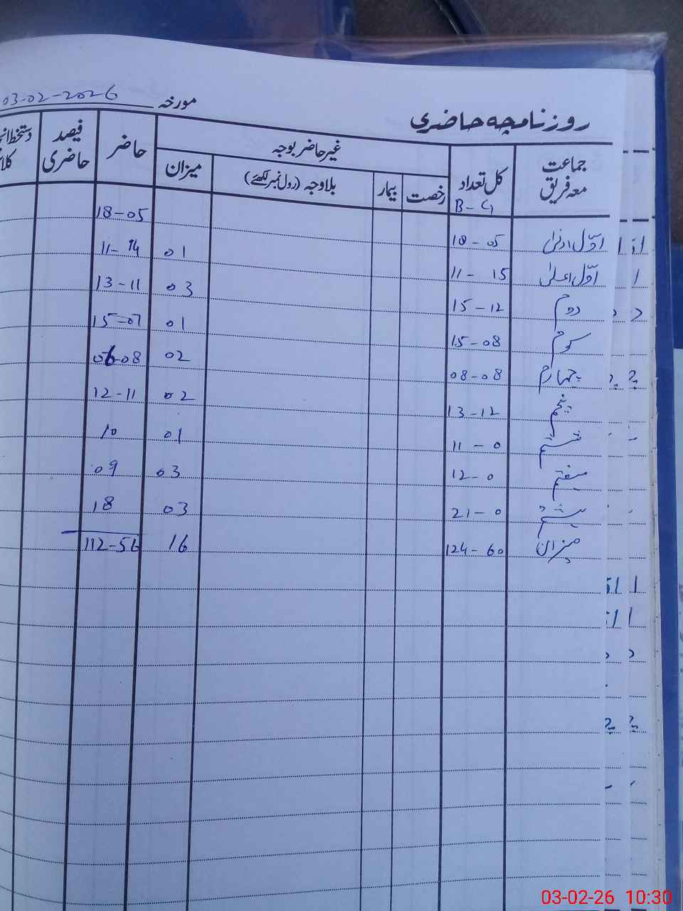 | CNIC | Full Name | Designation | R/C | Absence During Last Calender Month |