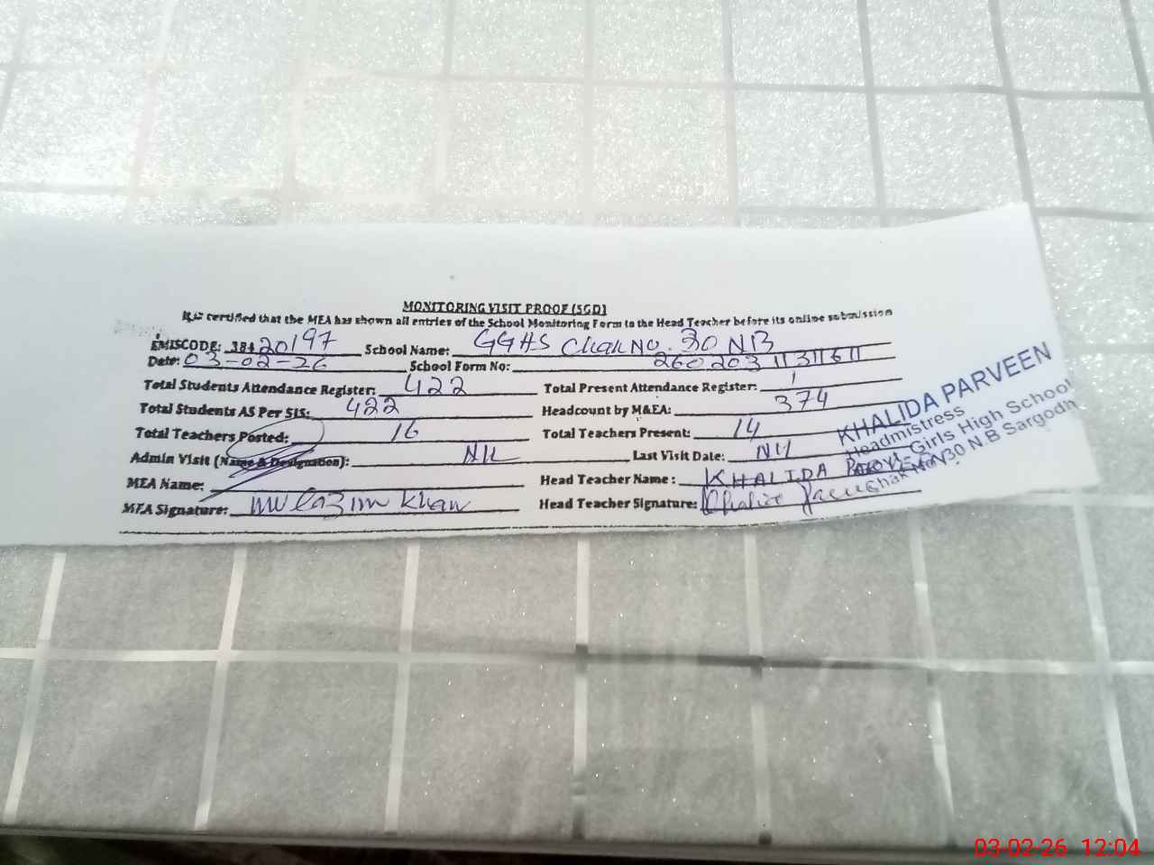 | EMIS Code: 38420197 | Name of School: GGHS CHAK NO.30 NB MITHA LAK | |||