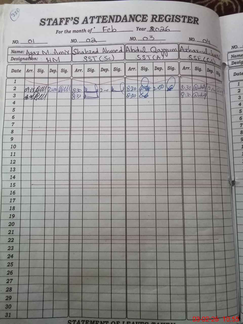 | Name: Ay**** Ma**** Am**** Designation: (School Headmaster's/Headmistress's) SST I/C HM Phone/Cell Number: 03**** |