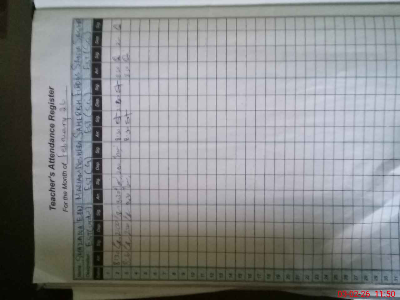 | Monitoring Date: 03-02-2026 | Start Time: 03-02-2026 11:31 AM | End Time: 03-02-2026 11:56 AM | Name of MEA: SH**** AK**** | |