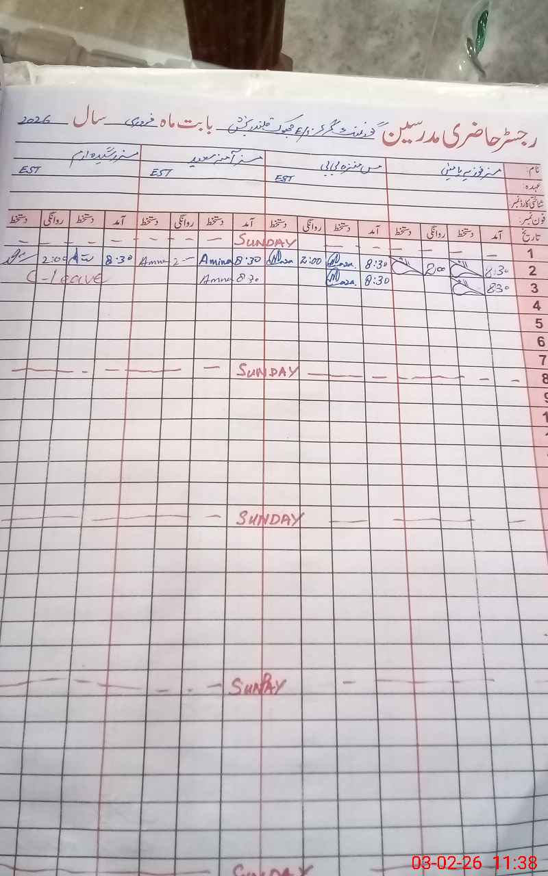 | CNIC | Full Name | Designation | R/C | Absence During Last Calender Month |