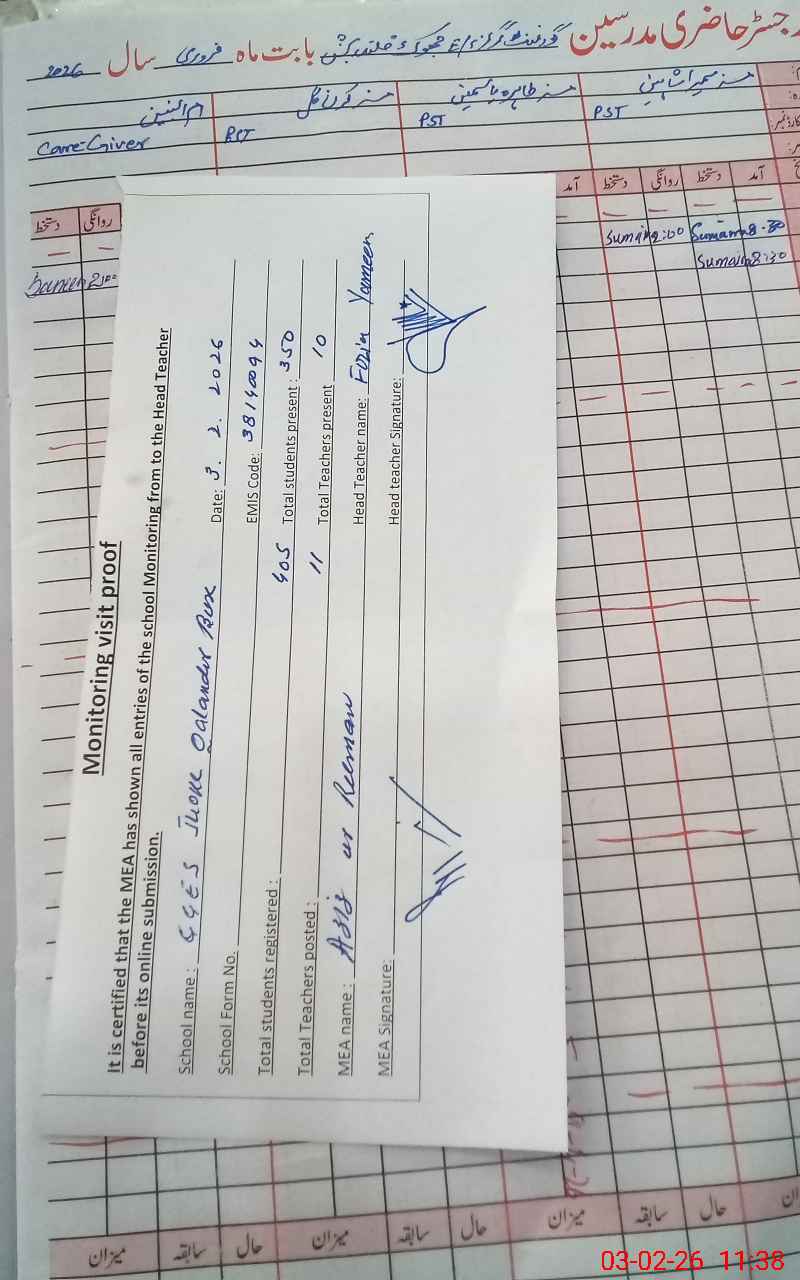 | Attendance Register | Head Teacher | MEA with School | Visit Proof |
