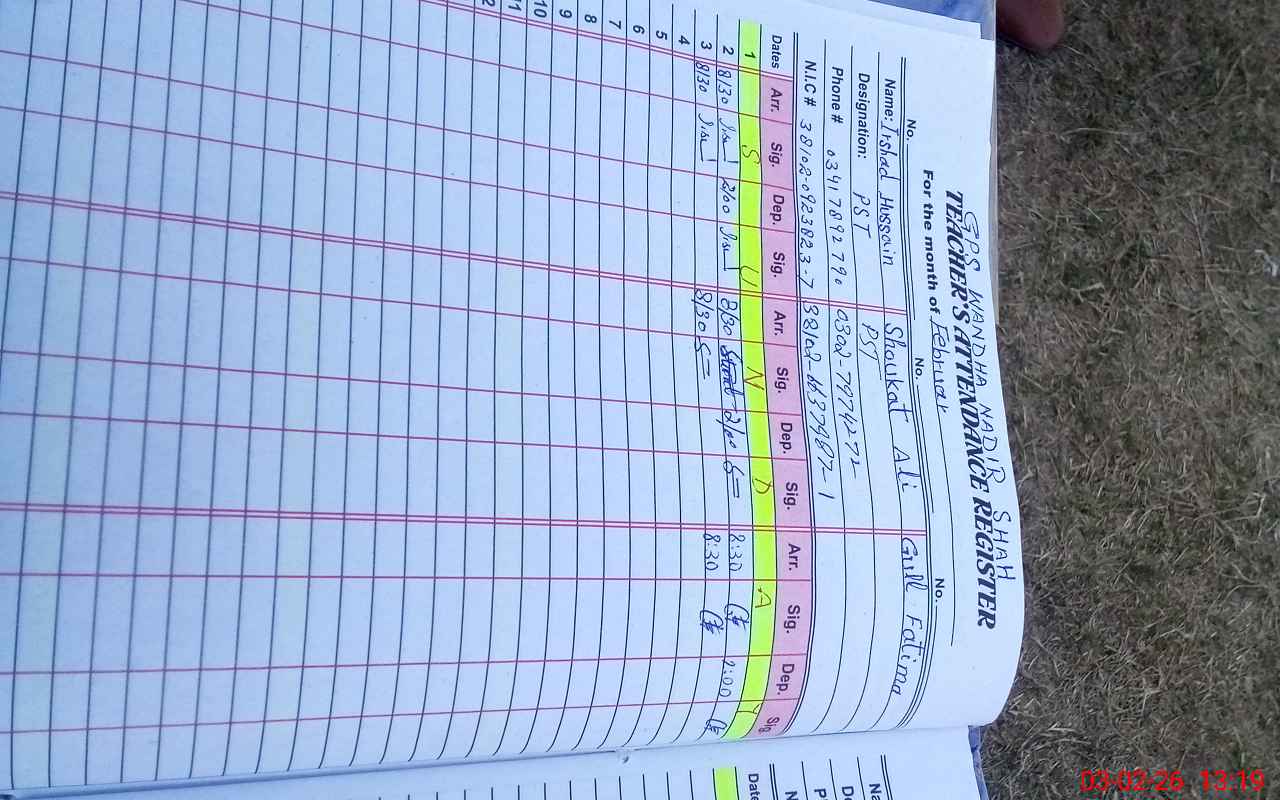 | Name: IR**** HU**** Designation: (School Headmaster's/Headmistress's) PTC/JV Phone/Cell Number: 03**** |