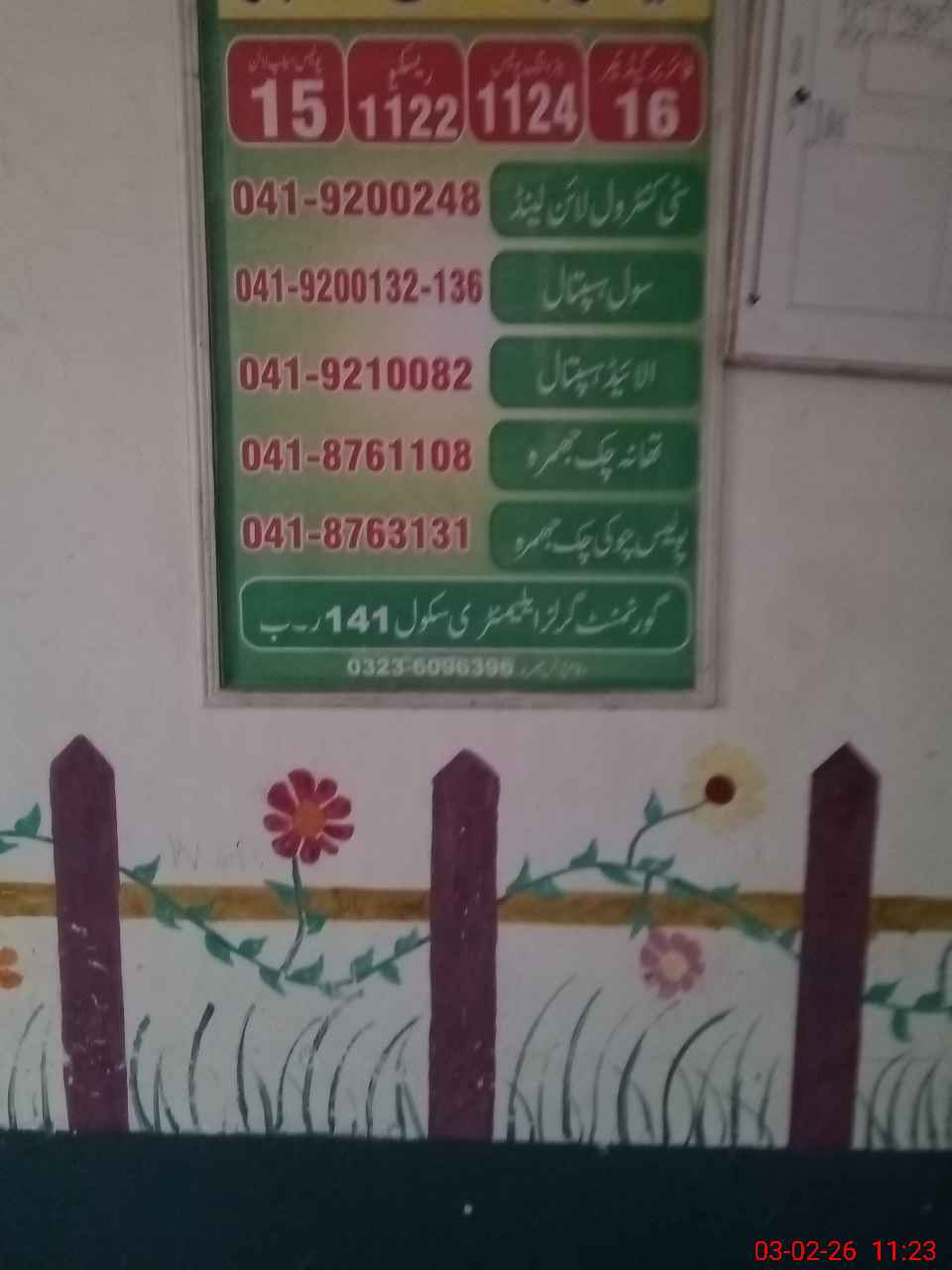 | EMIS Code: 33150141 | Name of School: GGES CHAK NO. 141 RB I | |||