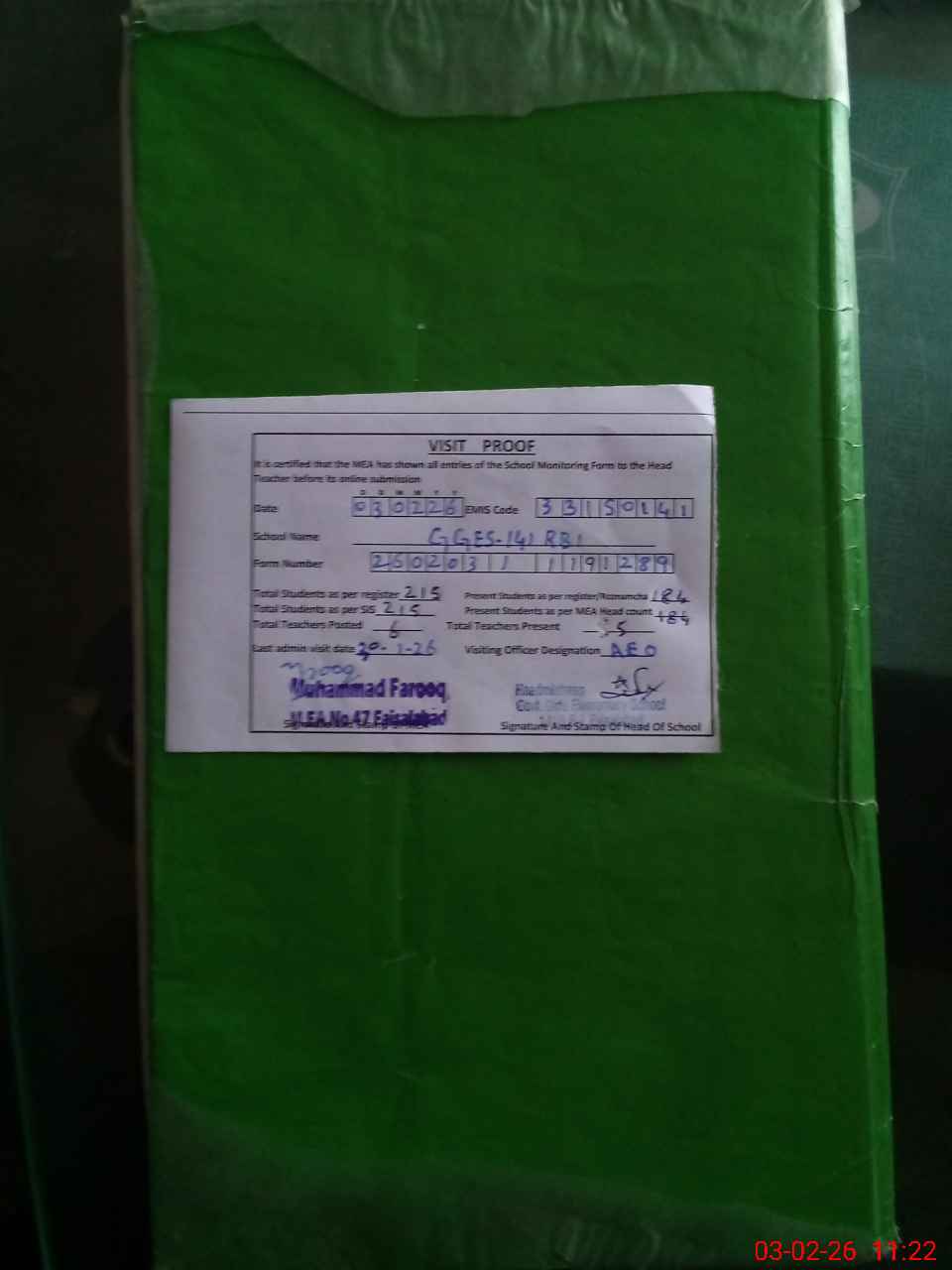 | Name: Sa**** Fa**** Qa**** Designation: (School Headmaster's/Headmistress's) EST Phone/Cell Number: 03**** |