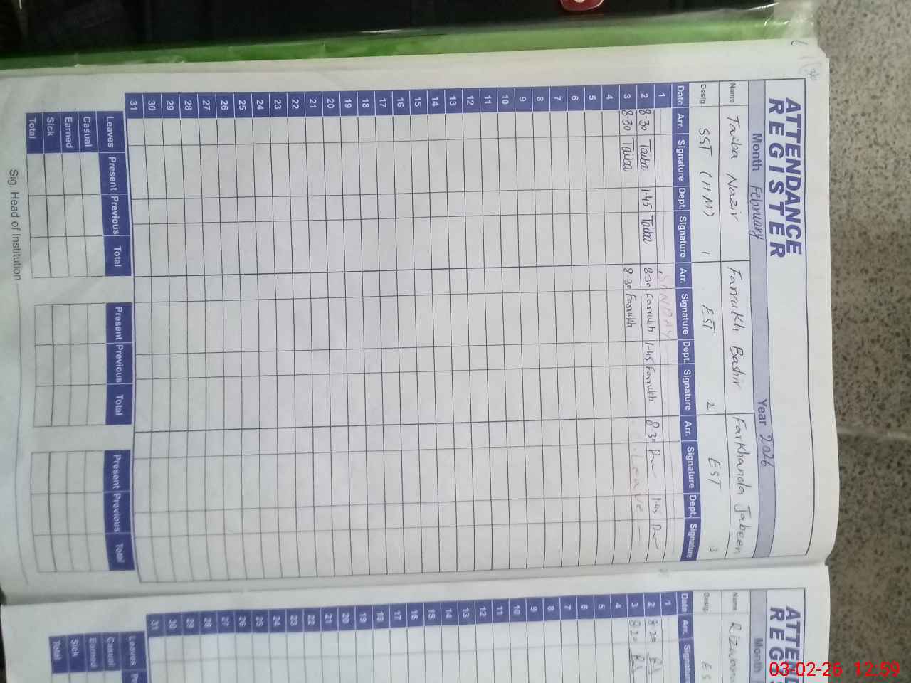 | 33**** | Ta**** Al**** | CHOWKIDAR | Regular | 0 | 0 | 31 | 0 | 0 | 0 | 0 | 0 | 0 | Absent (Un-Authorized) |