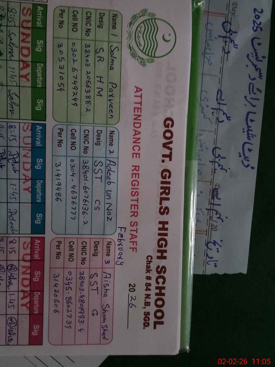 | Name: SA**** PE**** Designation: (School Headmaster's/Headmistress's) SR HEADMISTRESS Phone/Cell Number: 03**** |